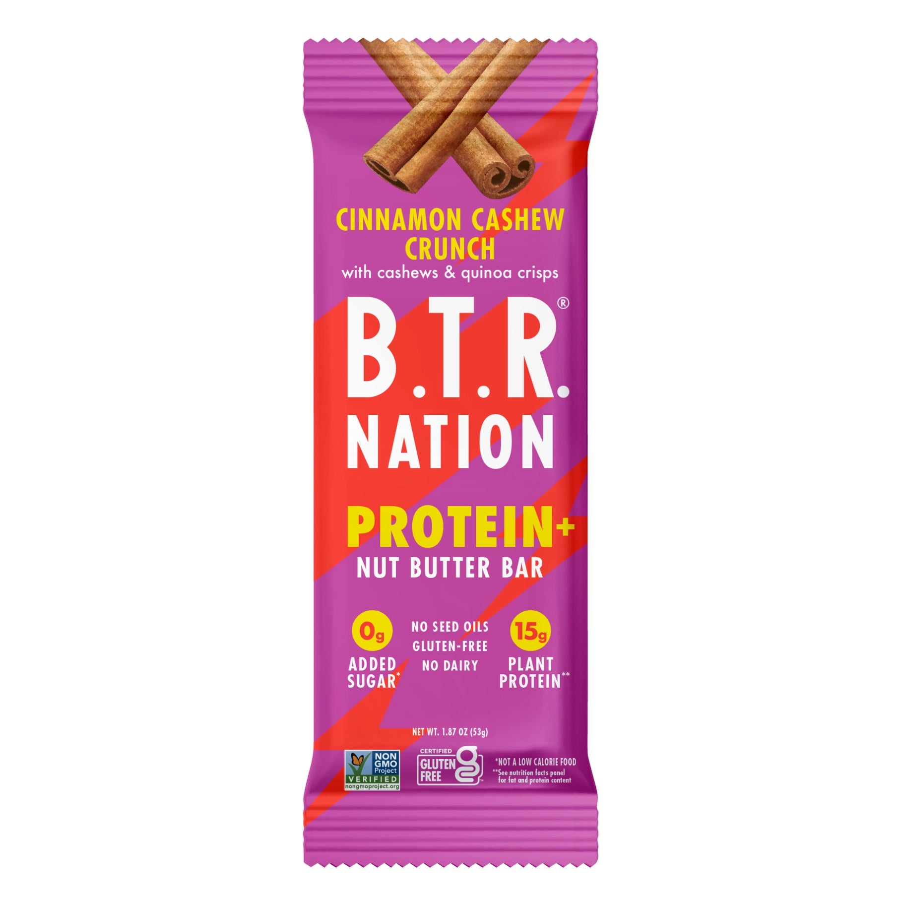 Enjoy the deliciously tasty B.T.R Bar Cinnamon Cashew Crunch, packed with 15g of plant-based protein and creamy nut butter for a satisfying boost. This gluten-free superfood bar combines the warm spice of cinnamon with crunchy cashews, making it the perfect happy snack to fuel your day naturally.