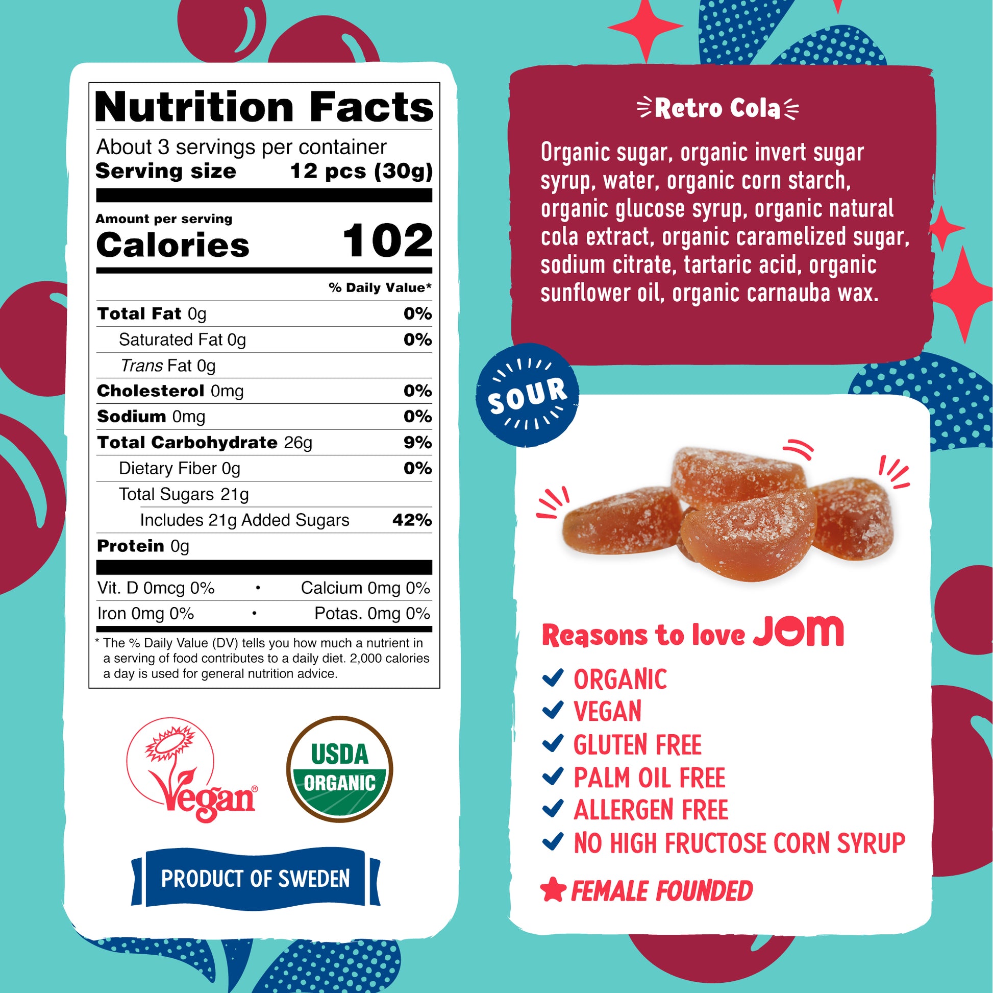 JOM Organic Retro Cola Sour Gummy Candy 3.5oz